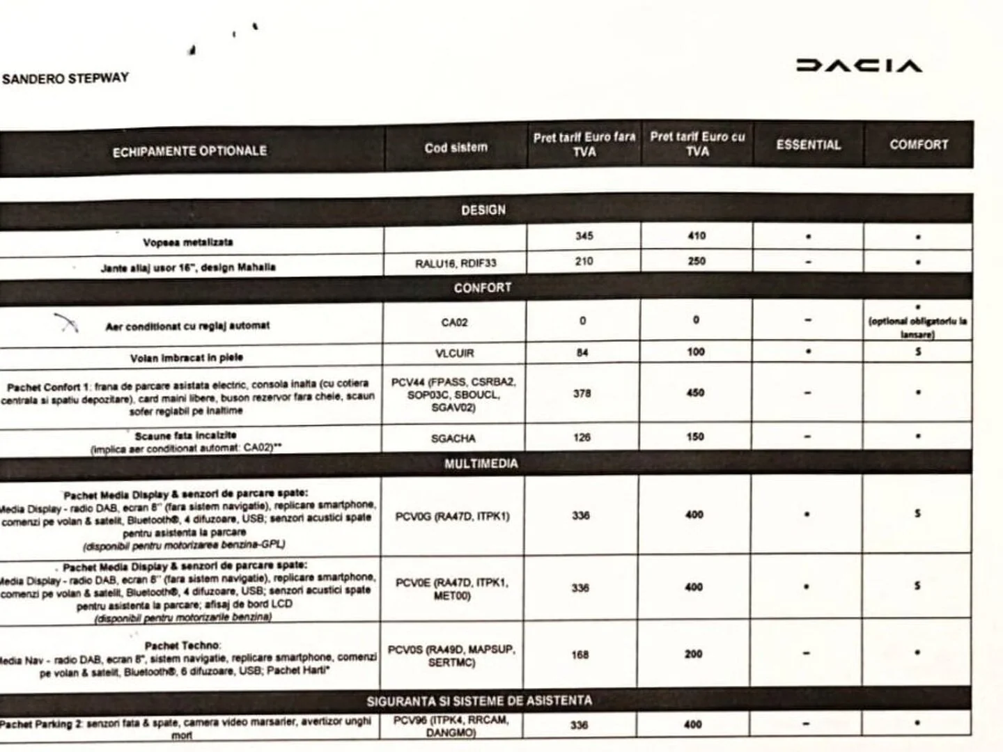 Masina a fost noua, cumparata din reprezentanta Dacia